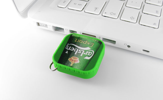 Podemos fabricar la memoria USB en cualquier color Pantone que nos especifique, además de imprimir su logotipo en la misma.