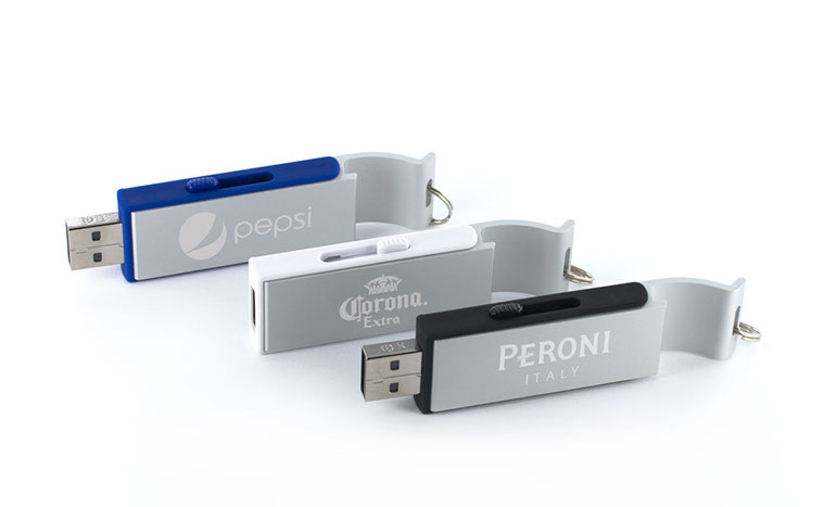 Diseño y funcionalidad en perfecta armonía. La memoria USB B15 Pop es la combinación de dos dispositivos extremadamente útiles en una sola memoria USB que puede ser marcada con el logo de su empresa.Ésta memoria le ofrece así dos regalos de empresa por uno , además de adaptarse al entorno personal como profesional lo que favorece una mejor visibilidad de su logo o marca. Su acabado en aluminio de alta calidad permite abrir botellas rápida y sencillamente y podrá además personalizar el color de los costados de plástico con el color de su elección.