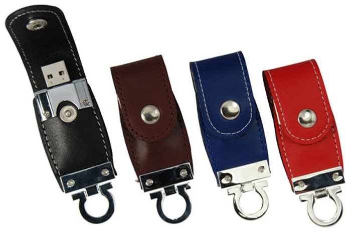 Llavero USB con terminado en Piel, elegante y portable, en 5 colores diferentes. Se puede marcar su logotipo en Estampado o Serigrafía.